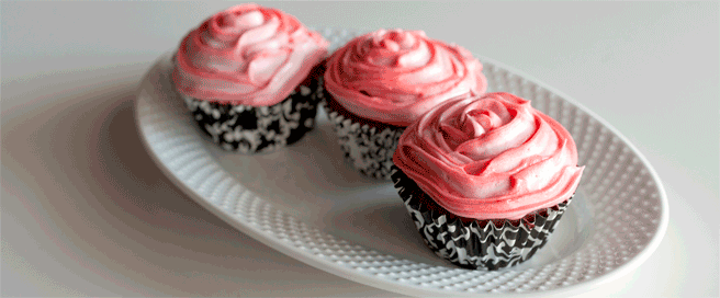 8. Starting in the center of the cupcake (once completely cooled), pipe in a swirling motion all of the way around the cupcake, creating a buttercream rose. Voila! Enjoy and share with your Valentine's Day Sweetheart!